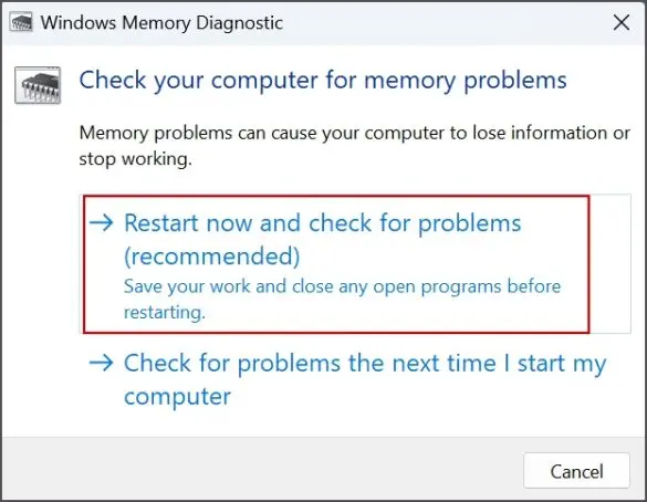 Windows 包含一个用于诊断 RAM 问题的内置实用程序。该工具可以检测您安装的 RAM 棒的任何故障。您可以按照以下步骤继续操作: