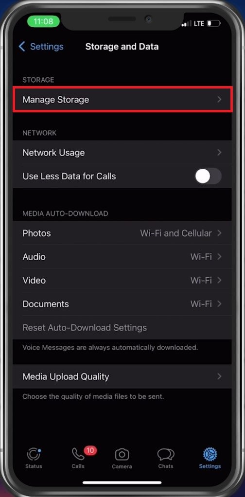 WhatsApp 存储设置