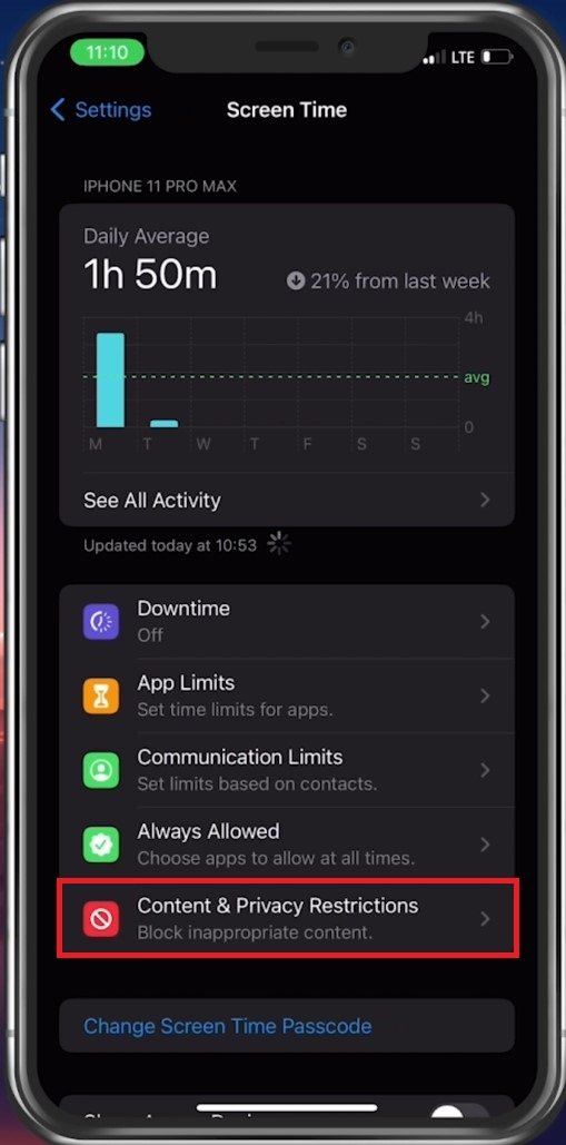 iPhone 设置 > 屏幕时间 > 内容和隐私限制