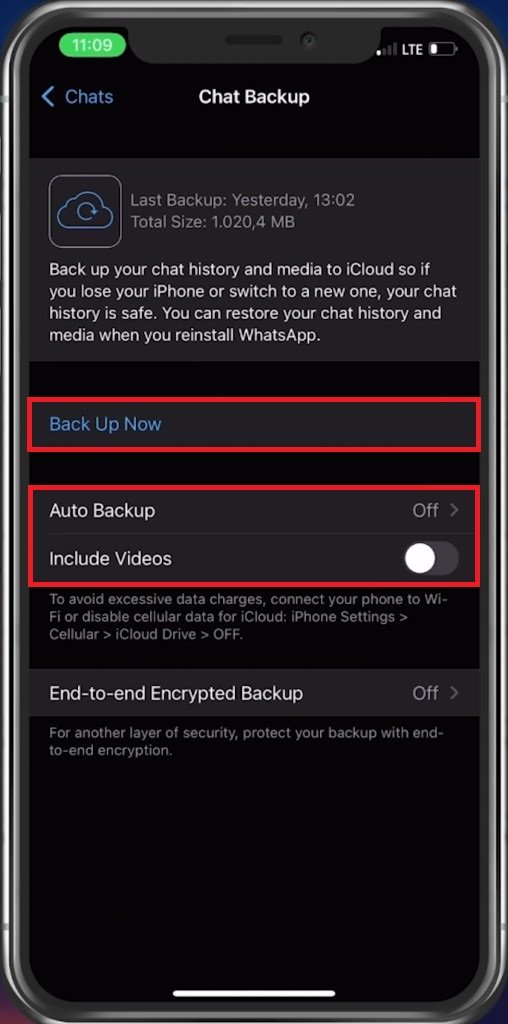 点击立即备份。根据所需的大小,备份 WhatsApp 数据可能需要一些时间。要减少备份大小,您可以不备份视频。