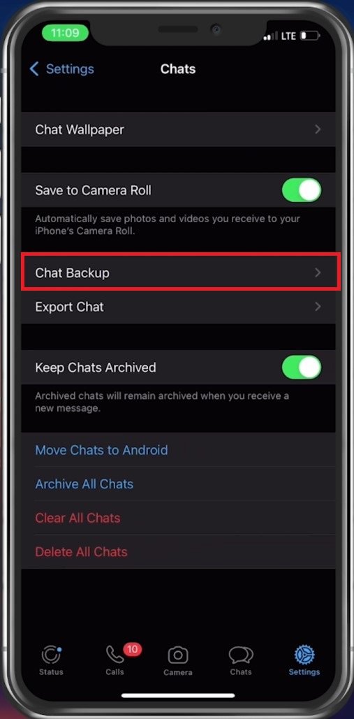WhatsApp 设置 > 聊天 > 聊天备份