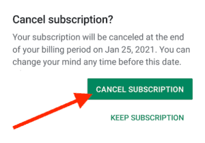 - 将出现一个新屏幕,您可以在其中完成 Surfshark 免费试用取消。轻敲 ”取消订阅”。