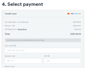 - 输入您的付款详细信息和电子邮件地址以创建您的帐户。