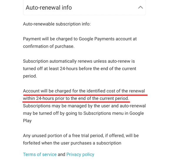 - 通读“自动续订订阅信息” – 有一些重要的“消除” 信息。接下来,点击“开始”。
