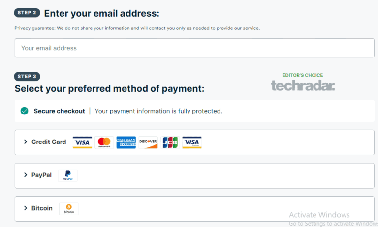- 输入您的电子邮件地址并选择您的首选付款方式。如果您想保持匿名,可以选择加密货币。然后,单击“立即加入”。