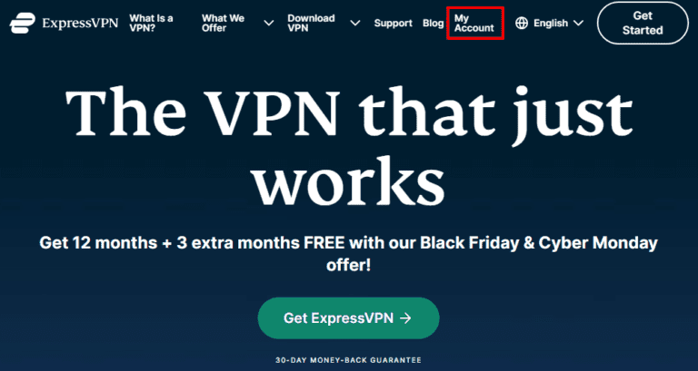 - 前往 ExpressVPN 网站,点击“我的账户,”并输入您的登录详细信息。