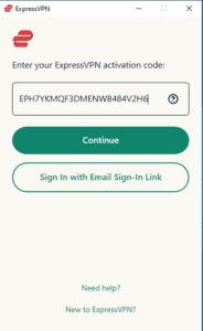 - 在下一个屏幕上输入您的电子邮件地址(与您的 ExpressVPN 帐户关联)并继续。