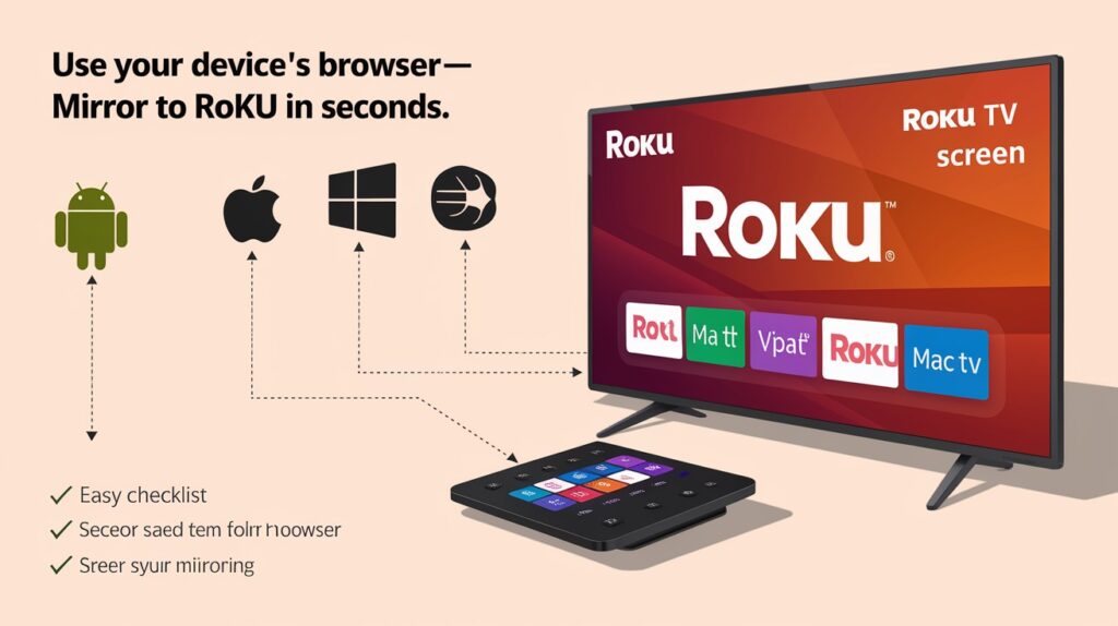 在 Roku TV 上显示设备的屏幕 - 使用您已知的任何浏览器。
