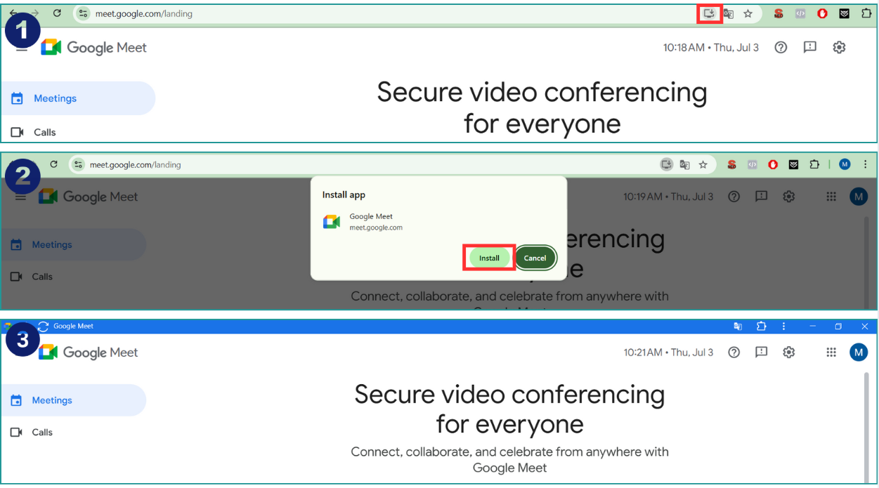 在 Windows 或 Mac 上下载 Google Meet 渐进式网络应用