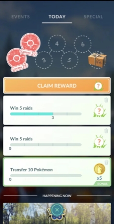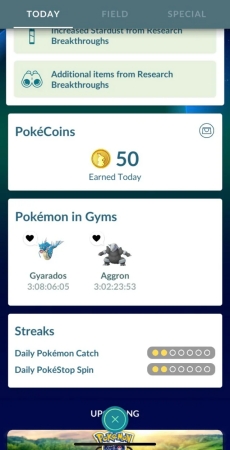 4)返回“实地研究”选项卡并点击“领取”以获得 PokeCoins 奖励。