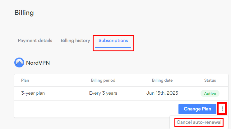 如果您选择不续订或希望更改为更合适的 NordVPN 计划,以下步骤应该可以帮助您: