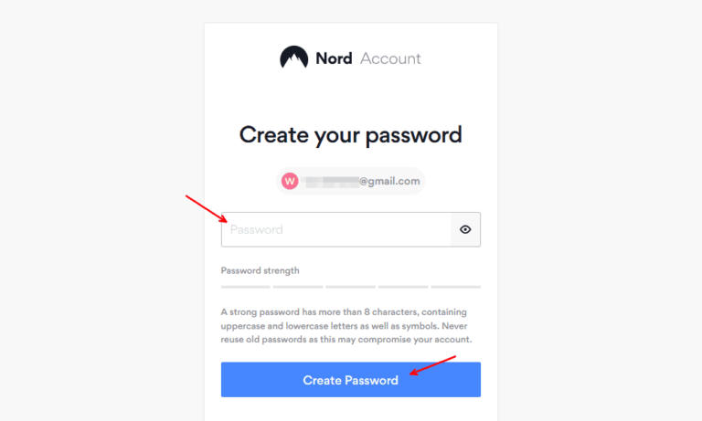 现在输入您的电子邮件地址创建您的 NordVPN 帐户。