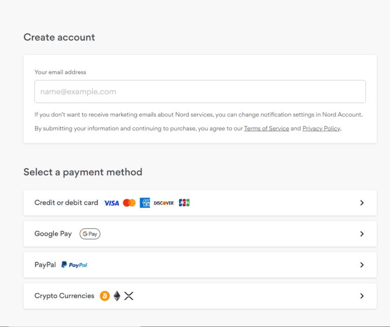 - 输入您的电子邮件创建一个帐户并选择合适的付款方式。