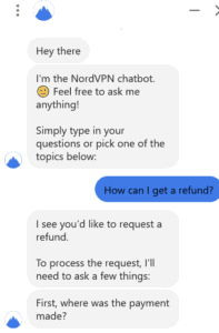 其实有几个方法可以获得 100% 退款保证,包括电子邮件。但根据我的经验,实时聊天如果您通过 NordVPN 网站购买套餐,则速度最快。