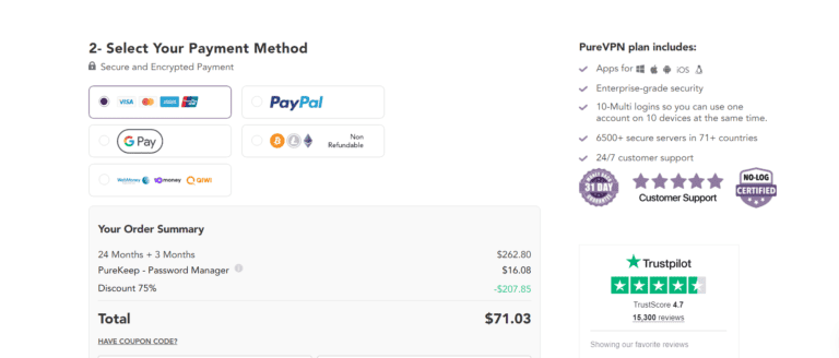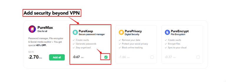 幸运的是,您仍然可以通过PureVPN的7天免费试用或31天退款保证尝试Purekep。只需确保您选择纯kekek作为附加组件即可。