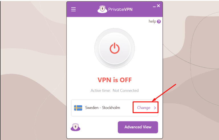 - 点击 ”改变” 打开 PrivateVPN 服务器列表。