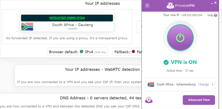 - 进行 IP/DNS 泄漏测试,以确认您连接到 VPN IP 地址,而不是 YouNow 禁止的 IP。