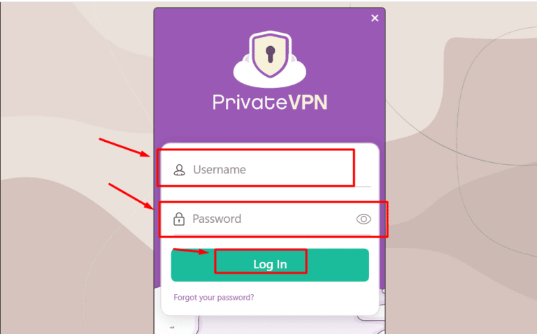 - 输入您的 PrivateVPN “用户名“ 和 ”密码” 来登录。
