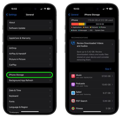 另外,请务必留意 iPhone 存储屏幕上的任何个人建议,例如在 iCloud 中保留高分辨率照片,在设备上保留较小尺寸的照片,或者让 iOS 自动卸载您不经常使用的任何应用程序。