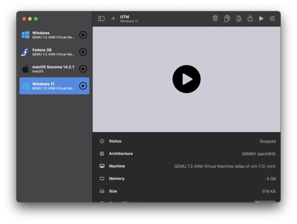 每当您想要启动 Windows 11 时,只需打开 UTM 并启动 Windows 11 虚拟机即可。