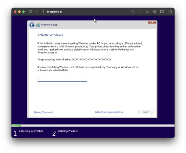 - 出现激活屏幕时选择“我没有产品密钥”,您无需激活 Windows 11 即可安装或在虚拟机中使用它