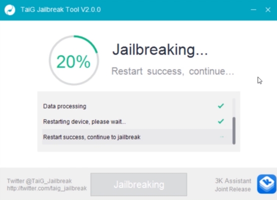 步骤 3.在 TaiG 中,请确保取消选择任何其他应用程序(例如 3K Assistant),并且仅选中 Cydia 进行安装。