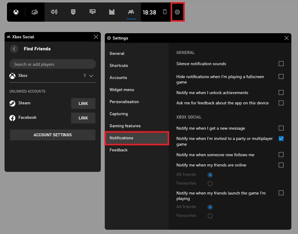 导航到您的 Xbox 游戏栏设置。在你的通知部分,查看一些 Xbox 社交选项,您可以从此处更改这些选项。我更喜欢禁用大部分通知,但这取决于个人喜好。