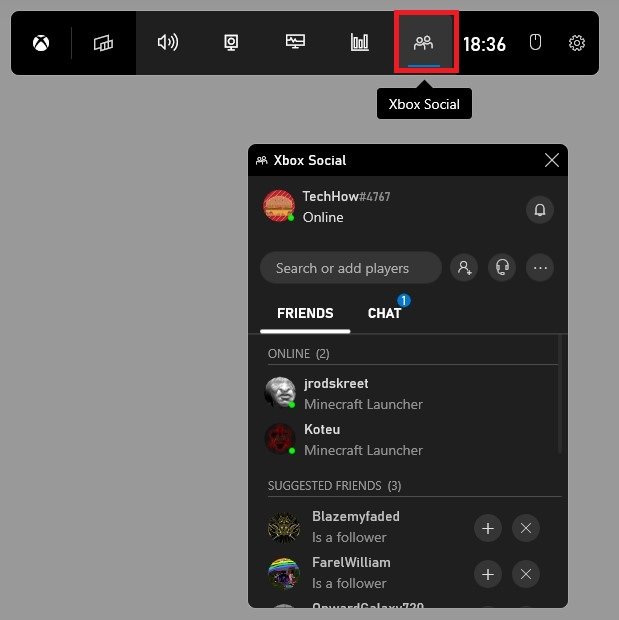 Xbox 游戏栏 > Xbox 社交