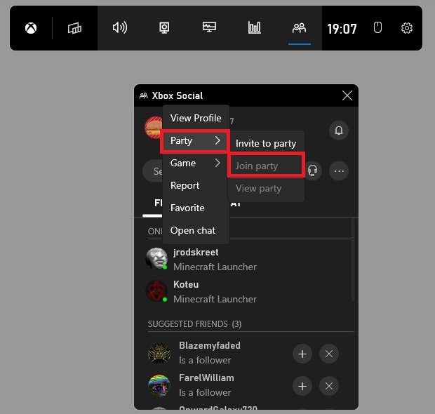 右键单击您的一位朋友时,导航至派对和加入派对。这将尝试加入您朋友当前所在的聚会。