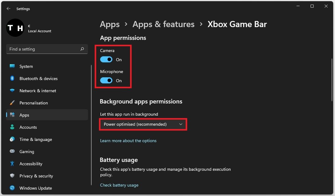 允许应用程序访问您的摄像头和麦克风。这些仅在使用应用内聊天或录制游戏时才会使用。设置让这个应用程序在后台运行选项功率优化。