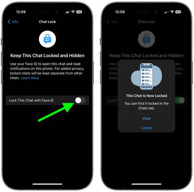 - 点击旁边的开关锁定此聊天选项(它会显示“使用 Face ID”或您的设备支持的任何身份验证)。