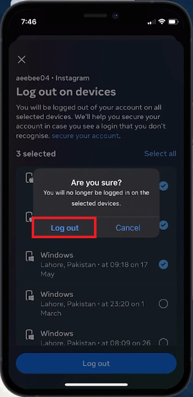 或者,选择“选择要注销的设备”以一次从多个设备注销。