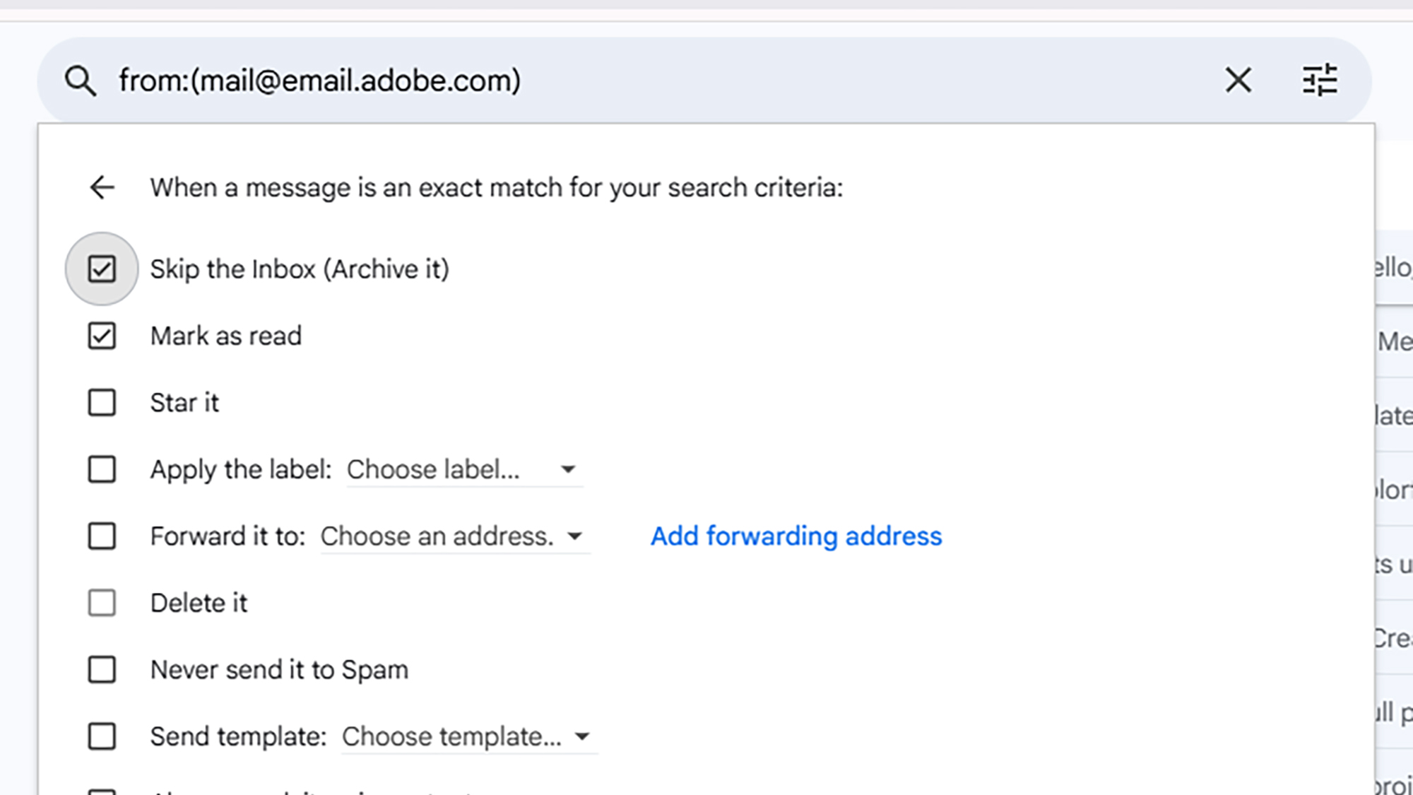 当您点击创建过滤器,您可以选择: