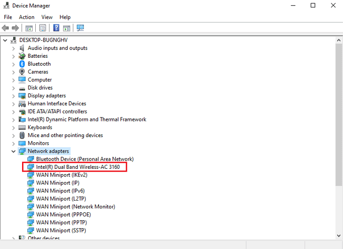 右键单击 Windows 开始按钮,然后打开设备管理器 > 网络适配器。如果您看到 Intel ® Dual Band Wireless-AC 3160 或类似的东西,则您的设备支持无线显示。