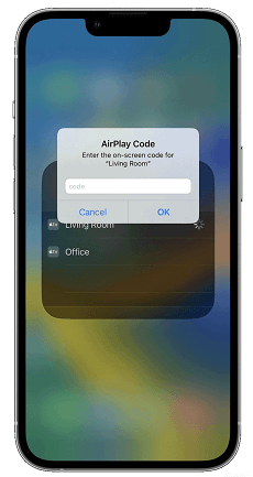 步骤 5。系统可能会要求您输入首次在电视屏幕上显示的 AirPlay 代码。要继续,请在 iPhone 上输入代码。