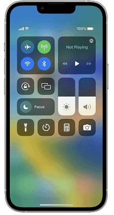 步骤2。从右上角向下滑动 > 在较新的 iPhone 机型上访问控制中心。在早期 iPhone 机型上从屏幕底部向上滑动。