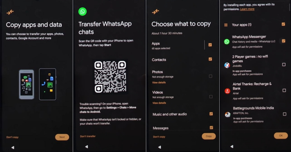 步骤1。设置您的新 Google 手机,直至显示“复制应用和数据”屏幕。
