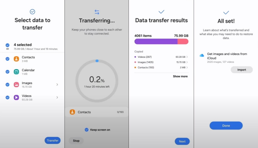 如果您要换用新的三星手机,您可以使用 Samsung Smart Switch 将 WhatsApp 聊天从 iPhone 转移到三星手机。此方法可确保传输所有消息、媒体和设置,不包括点对点支付信息。