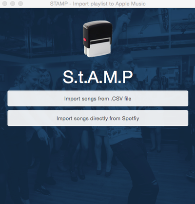 Stamp允许您将已下载到计算机的任何.CSV文件导入。因此,无论您是使用Spotify,rdio还是其他音乐流媒体服务来创建播放列表,都可以导出任何可与导出然后通过此程序导入它们。移至Apple Music只能使您可以从Spotify或RDIO移动播放列表。