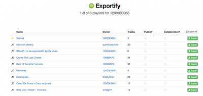 - 复制第一行(名称,专辑,艺术家)。然后,通过转到Apple Music打开所有出口播放列表。
