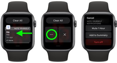 - 在通知上向左滑动,然后点击更多的(三个点)按钮。