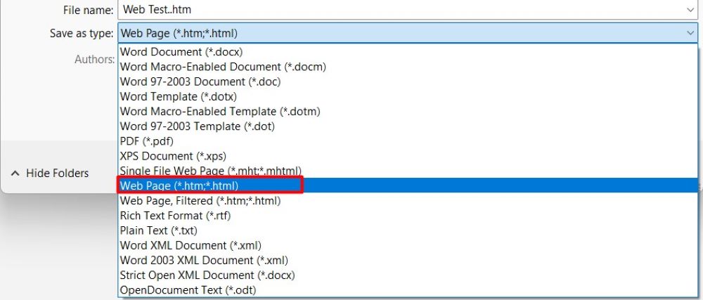 4)选择 ”超文本标记语言”在下拉网页选项下,然后单击“节省”来保存文件。