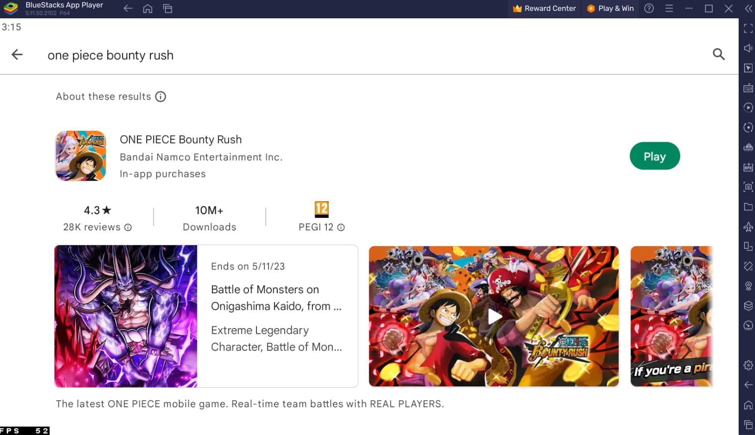 打开您的 Play 商店并使用您的 Google 帐户登录。搜索 One Piece Bounty Rush 并将游戏下载到您的 BlueStacks 模拟器。这可能需要几分钟才能完成,具体取决于您的网络连接。