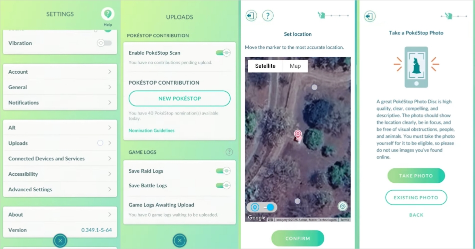 步骤2。轻敲设置 > 上传 > 新 POKESTOP.