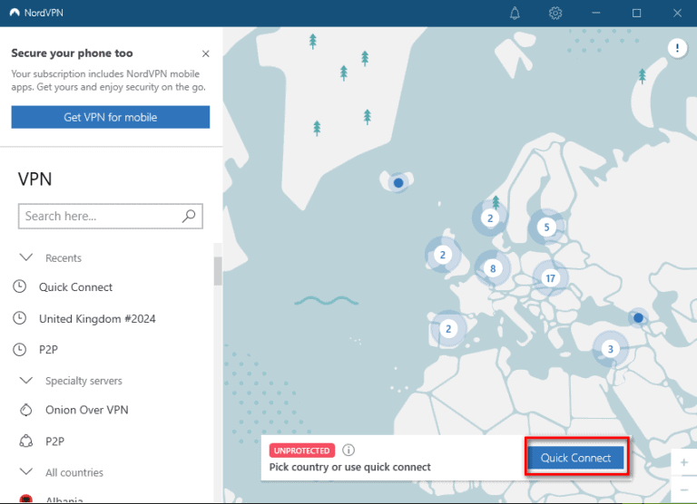 如果您正在使用快速连接NordVPN 的选项,这会自动将您连接到最近(通常是最快)的服务器。