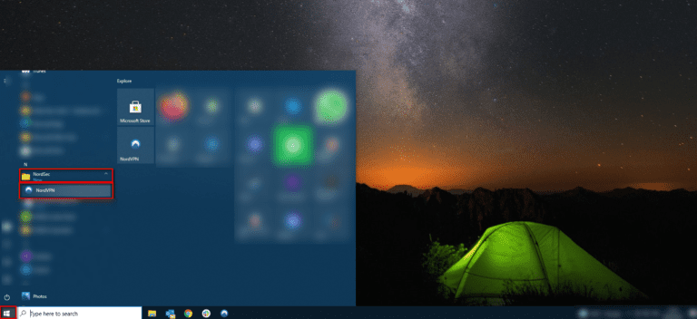 - 点击开始,找到北方安全局从左侧列表中选择文件夹,然后单击北VPN。