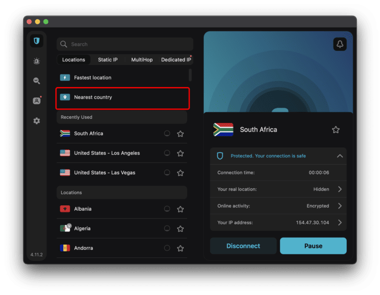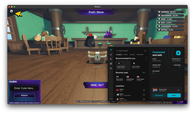 - 连接到 Roblox 可用位置的服务器。我选择南非是因为它是距离我所在位置最近的服务器。