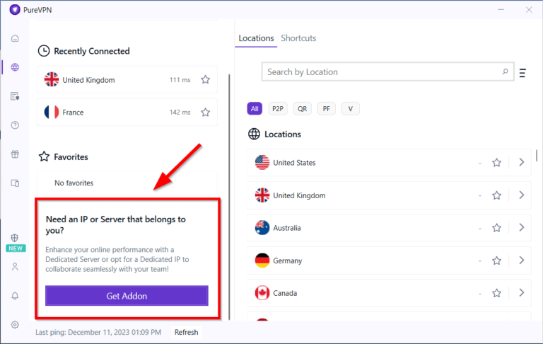 或者,获取并连接到PureVPN 专用 IP 地址。