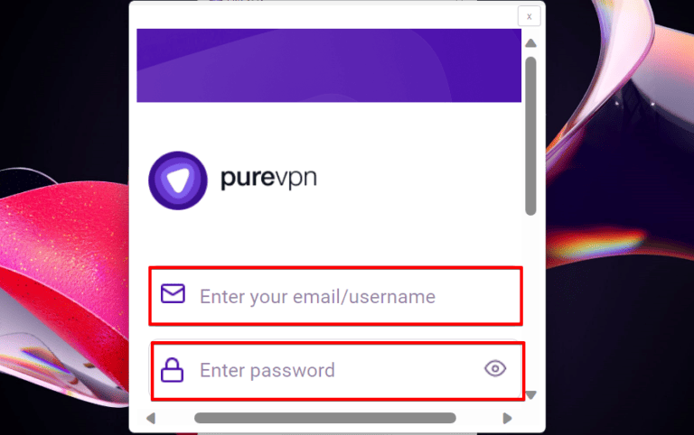 - 使用您的电子邮件/用户名和密码登录 PureVPN Windows 应用程序。