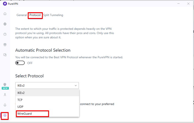 - 更改您的 PureVPN 协议。